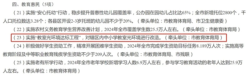 三是积极安装调光设备。 根据不同的教学需求和环境要求,在不同教室中安装调光设备,调节灯光亮度,提供更舒适的学习环境 。截至3月底,13所中小学幼儿园安装调光设备89台。(信息来源:宿州市发展和改革委员会)